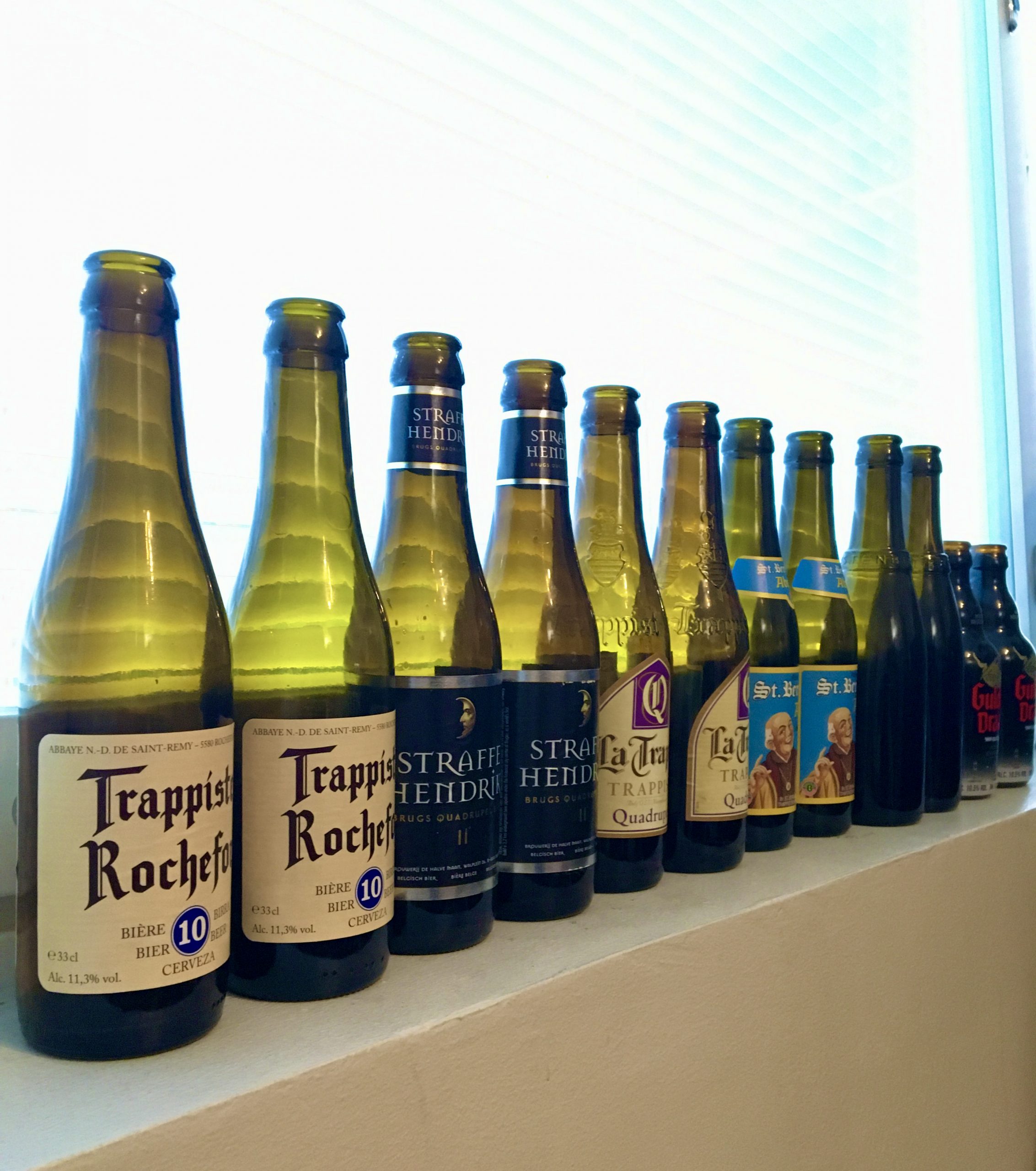 Haastetta riitti myös oluissa. Olin aikaisemmin maistanut kaikkia oluita, mutta neljää vain kertaalleen vuosien 2015 ja 2017 välissä ja St. Bernardusin Abt 12:llakin näytti minun Untappdissa olevan vain kaksi merkintää, joten muistikuvien perusteella en pystynyt oluita tunnistamaan. Rochefortin 10:n olin sentään täpännyt kahdeksan kertaa ja luultavasti maistanut vielä useammin. Toisaalta antamani Untappd-arvosanat antoivat syyn odottaa, että klassikot erottautuisivat edukseen: Gulden Draak 9000, Straffe Hendrik Brugs Quadrupel Bier ja La Trappe Quadrupel olivat saaneet minulta 3,75-4 palluraa, Sbt 12 4,5 pojoa ja “maailman paras” (= Westvleteren 12) sekä maailman paras (=Rochefort 10) täydet 5 tähteä.