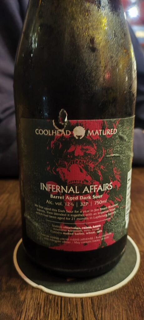 Nappaamme porukalla pöytään Coolheadin Infernal Affairsin, joka on loistava liemi. Tiukan olutanalysoinnin jälkeen palaamme tiskille, katsomme hetken toisiamme ja menemme jatkamaan iltaa Juovaan.